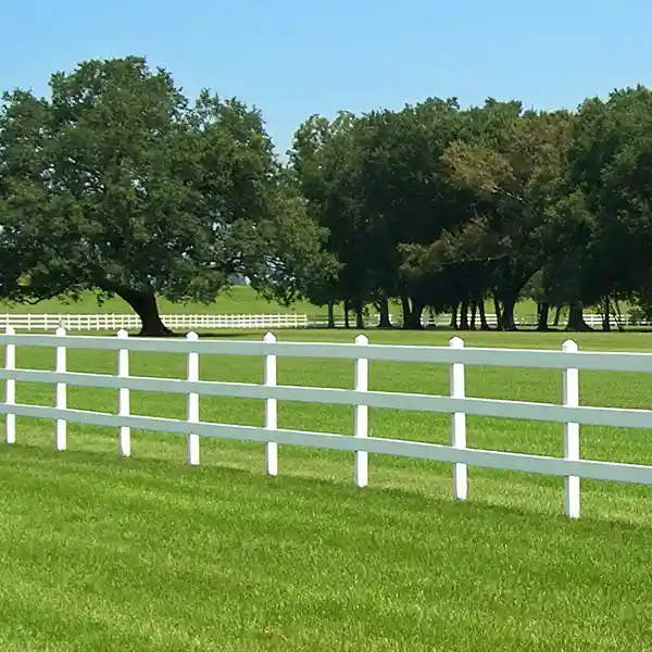 Vinyl rail fencing creates a clean, polished look and offers the durability needed for agricultural environments. This fence style mimics traditional wood rail fences but requires less maintenance. Vinyl rails resist weather, rot, and fading, making them a great option for equestrian farms and properties.