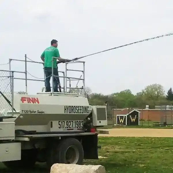Hydroseeding is a planting process that applies a mixture of grass seed, mulch, fertilizer, soil stabilizers, and water in a slurry that is sprayed directly onto prepared soil. This method distributes seeds evenly across large areas while protecting the soil from erosion during early growth.
